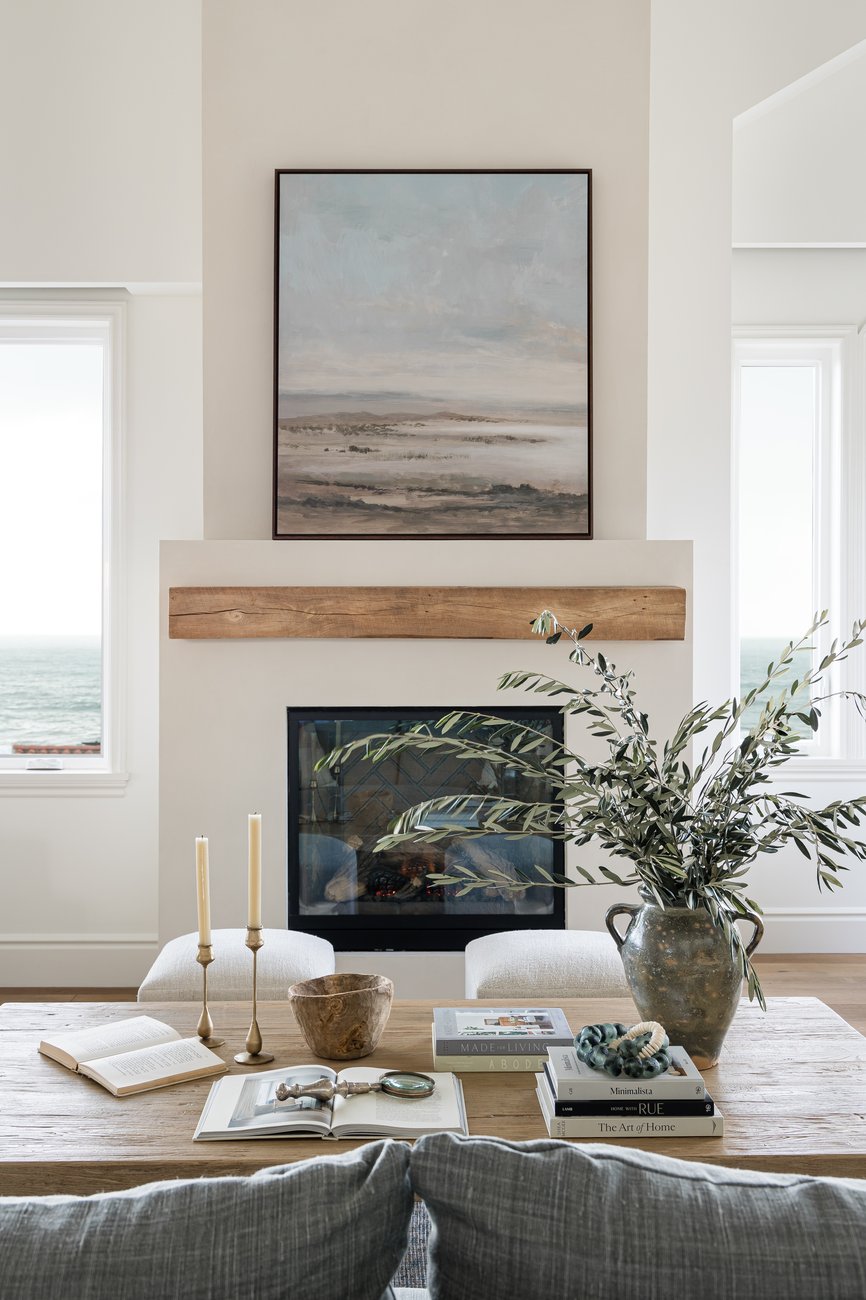 Designer Tip: Choose art that complements your firebox in scale and tone—nothing too small or too bold.