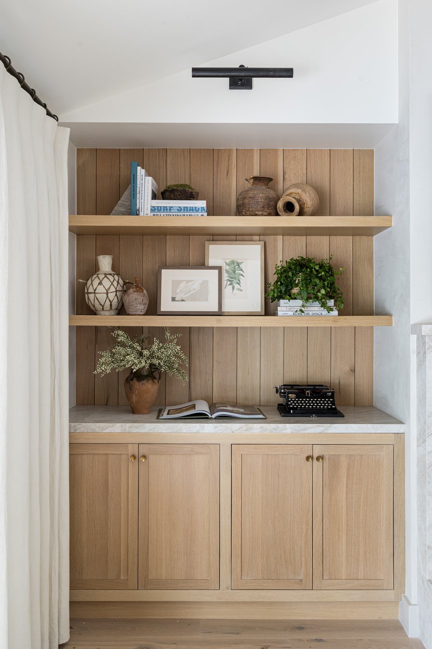 Before adding anything back, clear your shelves and take a moment to evaluate the space. Look at the lighting, wall color, and what function the shelf serves. This helps ensure your styling choices work with the space, not against it.