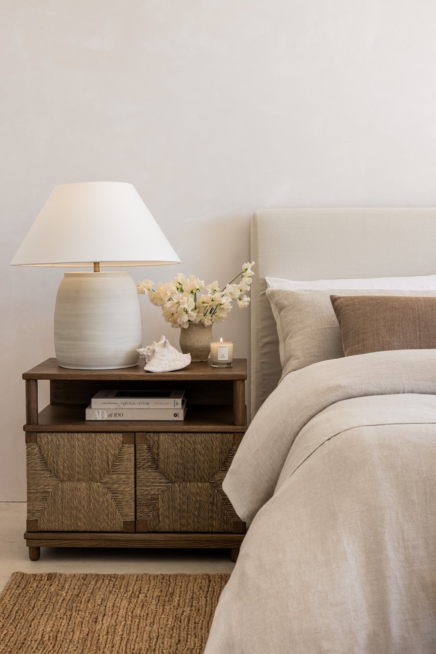 Designed with a restrained, thoughtful hand, the interiors embrace a soft material palette—plaster walls, natural woods, and layered textiles that add warmth without excess. Furnishings are intentionally minimal yet deeply considered, allowing each piece to contribute to a feeling of calm and ease.