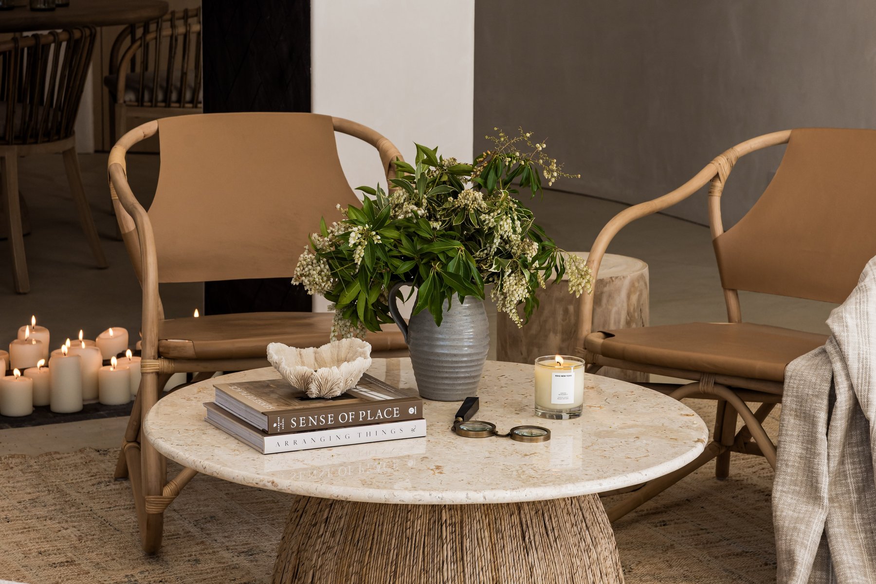 Within this framework, the furnishings are carefully curated to complement rather than compete. Sculptural silhouettes, natural materials, and a restrained, tonal palette bring a sense of cohesion and calm. Each piece was selected for its ability to feel both elevated and approachable, layered in a way that invites use while maintaining a refined sensibility.